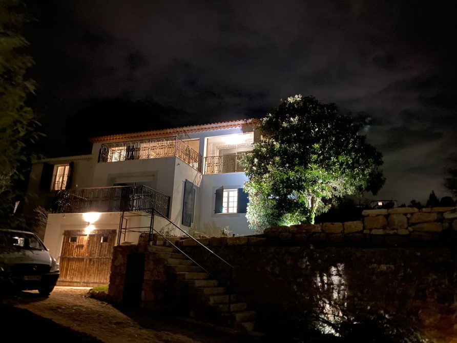 Trotz der zentralen Lage ist das 1500qm große terrassenförmig angelegte Grundstück nicht einsehbar und lädt durch die herrliche Aussicht auf das Massiv des Maures zum Verweilen ein. Das Gelände ist umzäunt und über ein elektrisches Eingangstor erreichbar. Die Gegend ist sehr ruhig.