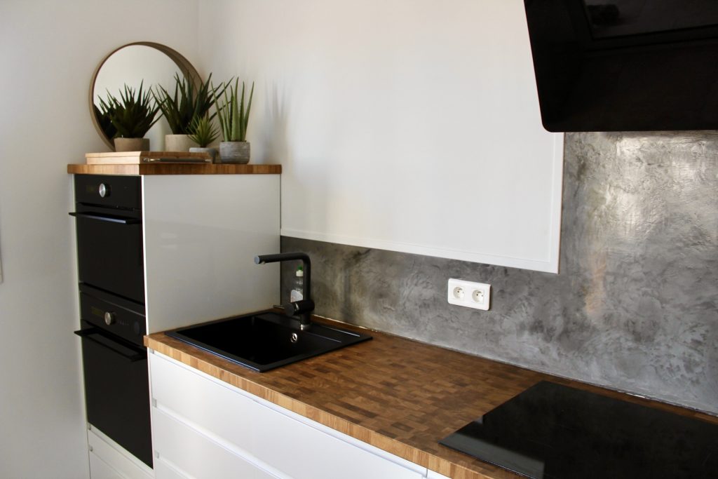 Die offene Küche ist voll ausgestattet und bietet ebenfalls direkten Zugang nach draußen.