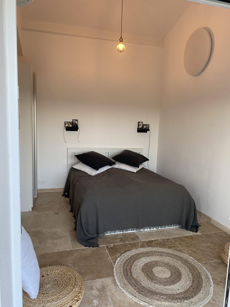 Es gibt ein Schlafzimmer mit Doppelbett. Nach dem Aufwachen schweifen die Blicke über die riesigen